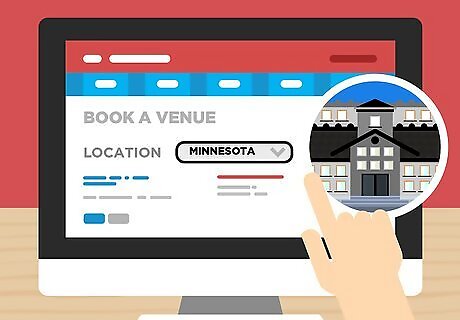 Locate and arrange a reception venue. Just as your officiant can set the tone for the ceremony, your reception site will set the stage for your celebration. If you’re not using a local wedding planner, there are many factors to consider when arranging your reception venue from number of guests to the atmosphere you want to create. Think about the type of reception you want and style of your wedding. Do you prefer something formal with a band? Or maybe you want something romantic or hip with a DJ? Knowing the atmosphere you want to create at your reception will help you more effectively locate and book your venue. Depending on where your ceremony is, you may want you reception to be at the same place. Some locations, such as hotels, will offer package deals for hosting a ceremony and reception, especially if you’ve chosen a destination wedding. Make sure your venue can accommodate all of your guests comfortably and within local zoning and fire laws. Find out if the venue is full service, which may help decrease stress and how much you have to arrange, including a caterer. There are many ways to find a reception venue in Minnesota. You can ask friends, family, or colleagues for suggestions. You may also want to search for a wedding planner yourself. One of the easiest ways is to search for a reception venue is online. Some wedding related websites offer search engines for wedding planners by location that can help you find several different options. You can also use local wedding magazines, blogs, and city guides to help you find a venue in your location.