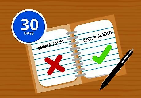 Change your surname if desired. If you and/ or your partner would like to change your surname upon marriage, you must state this on your application. Making sure to state this on the marriage license application will help ensure that you have legally changed your surname and can avoid a longer process of changing your surname once the marriage has occurred. If you or your fiancé(e) have committed a felony, there is a thirty day waiting period before the County Registrar can issue the marriage license with the changed surname. Once you change your surname on the marriage license, there are no other forms you need to fill out.