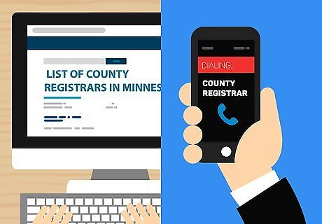 Figure out the appropriate County Registrar. County Registrars are the authorities that issue marriage licenses to couples in Minnesota. Call ahead of your wedding date to confirm hours of operation, verify requirements, and any other questions you may have. For a complete list of County Registrars in Minnesota, consult the website http://usmarriagelaws.com/search/united_states/minnesota/marriage_license/#registrar. Some Country Registrars have websites with information on specific laws in their county of jurisdiction. In the event that there is no website for your specific County Registrar, you can call the number listed to verify information.
