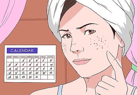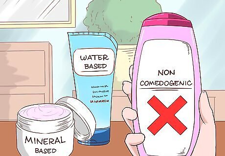 Change your makeup and skin products. Heavy makeup and greasy skin products can lead to clogged pores and acne breakouts. If you routinely experience acne breakouts, your skincare regimen could be to blame. Look for “non-comedogenic” labeling on your makeup and any other products you put on your skin. This label means that these products are not likely to clog pores or cause breakouts. Also look for "oil-free." Choose water-based or mineral-based makeups when you can.