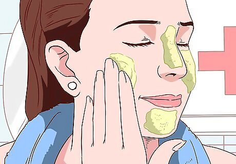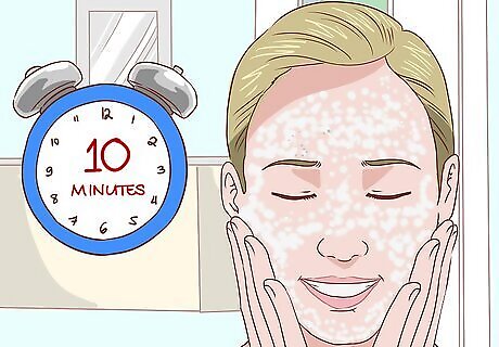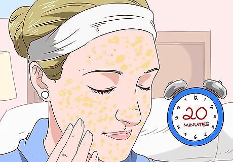 Spread the mask over your skin. Use your fingertips to gently spread the mask over your face, neck, or other problem areas. You can also use a cotton-tipped swab to apply the mask to problem spots and blemishes. Allow the mask to dry for 15 minutes.