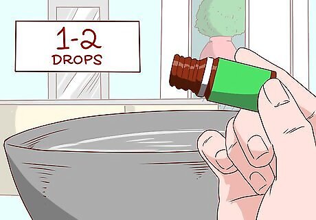 Add one to two drops of essential oils. Several essential herbal oils have antibacterial or antiseptic properties, allowing them to kill the bacteria and other microorganisms on your skin that can promote acne. You should never ingest essential oils, as many are toxic or cause unpleasant side effects when consumed. Here are some good options: Spearmint or peppermint. Add one drop per quart of water; you can increase this if necessary. Both peppermint and spearmint oil contain menthol, which has antiseptic properties. Thyme. Thyme has antibacterial properties and increases blood circulation by opening up blood vessels. Calendula. Calendula has antimicrobial properties and can help accelerate skin healing. Lavender. In addition to being very soothing, lavender oil has antibacterial properties. Rosemary. Rosemary is naturally antibacterial and is especially effective against P. acnes. Oregano. Oregano oil is antibacterial and anti-inflammatory. Avoid tea tree oil for steam baths, as it is highly toxic when consumed. You can substitute ½ teaspoon of the dried herb for essential oil if you can’t find the essential oil.