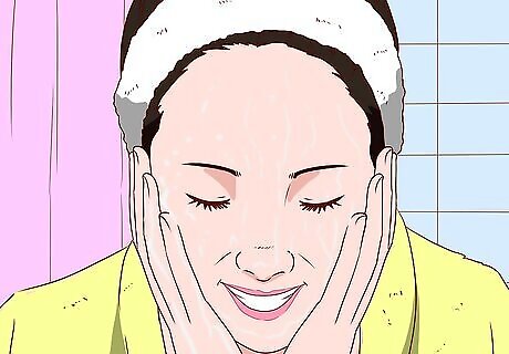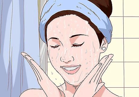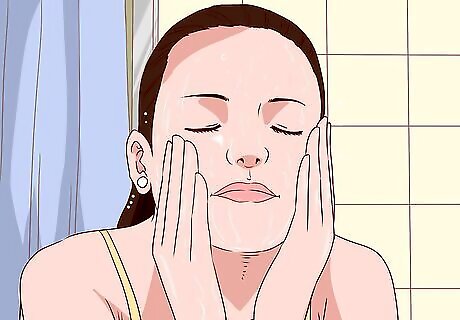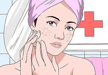 Rinse your face well. Use lukewarm water to rinse your face, and then pat it dry with a clean towel. Don’t rub your skin.