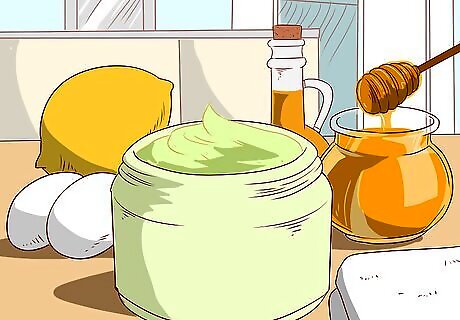 Make a mask for oily skin. Combine one tablespoon of raw honey, one egg white, one teaspoon of lemon juice or witch hazel, and ½ teaspoon of peppermint, spearmint, lavender, calendula, or thyme essential oil. Stir until thoroughly mixed. Raw honey has natural antibacterial and astringent properties. Egg white thickens the mixture and also acts as an astringent. Lemon juice is an astringent and also a whitening agent.. Witch hazel is an astringent but does not have a whitening effect. The recommended essential oils have antibacterial or antiseptic properties and can help kill bacteria on your skin.