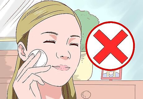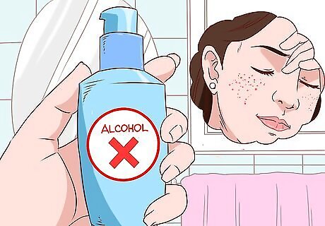 Avoid products that contain alcohol. Skin products such as toners, astringents, and exfoliants often contain alcohol. Alcohol dries out your skin and can leave it irritated and prone to breakouts.