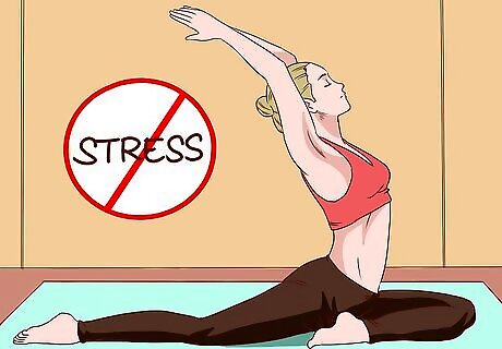 Remove stress from your life. Stress doesn’t cause acne, but it can make existing acne worse Although everyday stress is inevitable, try to avoid stressing out over things by taking a natural approach to relaxation. Try meditation or yoga. Visualization or surrounding yourself with a calming presence can often minimize the effects of stress and provide you with a relaxing posture. Hit the gym. Run, lift or box out of your stress. Releasing endorphins during workouts can lighten your mood. Evaluate your environment. In addition to a toxic work or home environments, environmental pollutants and even food additives can make you anxious.