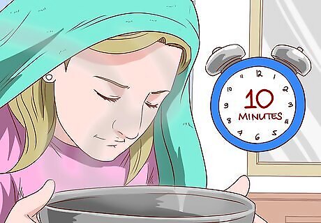 Breathe normally. Try to relax and take even, calming breaths. Keep your face over the steam for 10 minutes. If you begin to feel uncomfortable before the 10 minutes is up, move away from the steam.