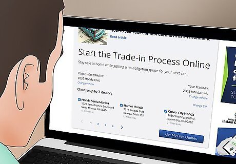 Trade the vehicle to a dealership if you’re replacing it. If you plan on getting a new vehicle, take it to a dealership that offers trade-ins to exchange your old car for money towards a new one at that dealership. Look up dealers near you, take a look at their stock online, and take your vehicle in to discuss a trade-in. This is the best option if you don’t want to spend weeks or months selling your vehicle but you still want a good return on the old car. In many cases, if time isn’t an issue, it’s better to sell your car privately and then put the cash towards a new vehicle. Negotiate aggressively with the dealer when it comes to the price they offer for your old car and the price they’re offering on a new vehicle. After financing, dealerships make most of their money on trade-ins, so they’ll be willing to meet you halfway most of the time. Be willing to walk away. Most dealerships accept trade-ins and you may get a better price elsewhere if you aren’t happy with what they’re offering.