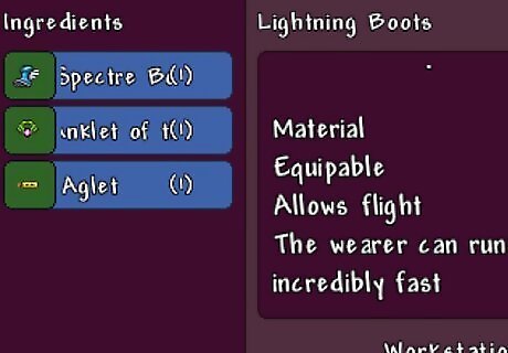 Find The Aglet and the Anklet of the Wind. The Aglet can be found easily by exploring Forest Chests on the Surface. If you can't find one, you have a chance of getting it from a wooden crate while fishing. The Anklet, however, requires more exploration. You can find one in the Underground Jungle Biome, inside of a Jungle Shrine or in a Jungle Crate (fished up only in a Surface Jungle Biome).