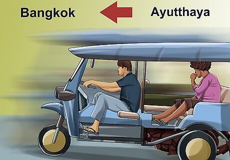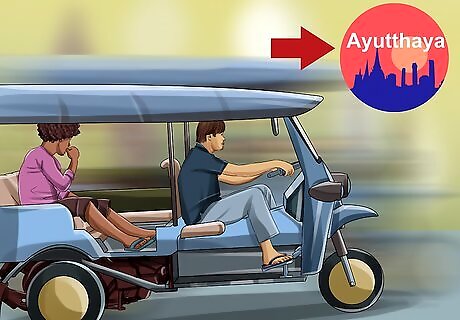 Arrange a tuk-tuk tour if you'll want local transport in Ayutthaya. Ask a local tuk-tuk driver for a tour of the temples if you're looking for a fully catered experience. Many drivers loiter at the taxicab stand in Ayutthaya looking for passengers. Negotiate what feels like a fair rate to you for the experience. Always decide upon a rate before beginning your tour to avoid haggling over the price later.
