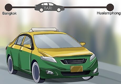 Use the subway or take a taxi to the Hualamphong station in Bangkok. Take the MRT line of the subway directly to Hualamphong train station, which is located on the subway line. You can also hop a tuk-tuk or taxi from your hotel to the station if you prefer. The cost will depend upon your current location. The station is located at Rama IV Rd Pathum Wan in Bangkok if you need to give a taxi or tuk-tuk driver the address.