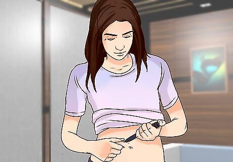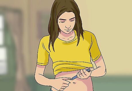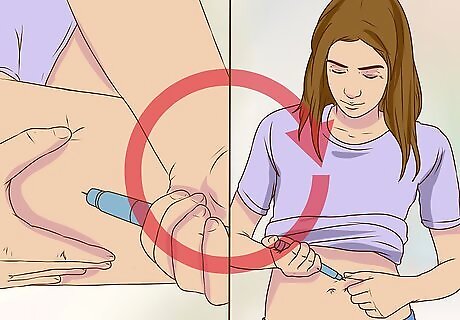 Make a note of when and where you injected the medication. In a notebook, write down the date and time of the injection. Also write down exactly where you injected the medication. For your next injection, choose a site that is at least 1 inch (2.5 cm) away from the last injection site. Alternate between your stomach and thigh for injection sites. After 2 weeks, you can reuse an injection site.