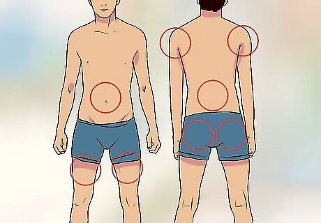 Choose an injection site on your thigh or stomach. You can either choose the top of your thigh or the lower part of your stomach. If you choose your lower stomach area, make sure the injection site is 2 inches (5.1 cm) away from any side of your belly button. Choose a site that is free of bruises, sores, lesions, scars, scaly patches, or stretch marks. An injection in the outer part of your thigh or your lower stomach will hurt the least, due the muscle and fat in those areas.