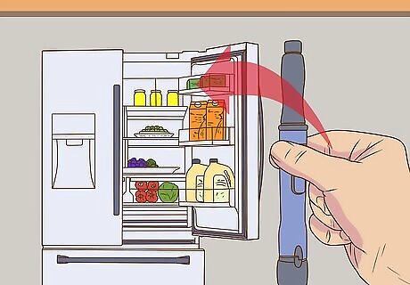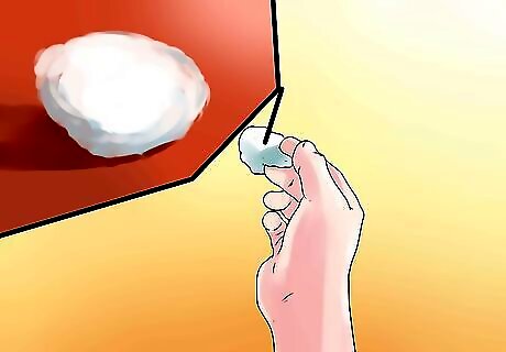 Place your materials on a flat surface. Remove the Humira syringe from your refrigerator. Place the syringe, an alcohol swab, and a cotton ball on a flat surface, like a table or tray. Check your medication's expiration date to see if it has expired. Grab your sharps container as well. If the medication has expired, do not use it. Contact your pharmacy for a replacement. If a nurse is coming to give the injection, remove the syringe from the refrigerator 30 minutes before the injection is scheduled. You could use a plastic milk jug for a sharps container, if necessary.