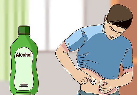 Clean the injection site with alcohol for 20 seconds. Rub the injection site with the alcohol swab for 20 seconds. Let the injection site dry completely before proceeding, about 10 to 15 seconds. If you do not have an alcohol swab, use a cotton ball dipped in 70 to 90% isopropyl alcohol instead.