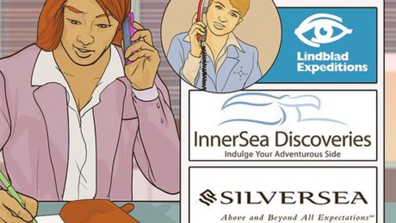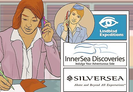 Contact an expedition cruise line. These companies specialize in delivering the sort of stripped-down adventure opportunity you’re after. There are several notable cruise lines to choose from, including Linblad Expeditions, InnerSea Discoveries and Silversea, who specialize in a hybrid luxury and excursion brand of ocean travel. Find a company that offers services near your area and meets your standards for accommodations, activities and other amenities. Cruise packages are priced per person, and will ordinarily run you anywhere from $3,000-5,000. It may be necessary to drive or even fly in order to reach the port from which your cruise line sets sail, so be sure to account for this in your planning and scheduling.