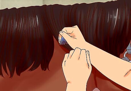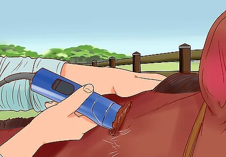 Purchase horse-specific clippers. You can purchase clippers online or from an equestrian supply store. A pair of heavy-duty horse clippers will be able to cut through the thick hair of the horse. Look online, read customer reviews, and buy a pair of clippers that meets your needs and budget. Human hair clippers may not be able to cut through the horse’s thick hair and may not have the right sized attachments for your horse.