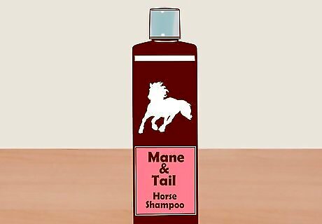 Buy livestock or horse-specific shampoo. Most human shampoos can be harmful to a horse’s sensitive skin and should be avoided. To be safe, purchase livestock or horse-specific shampoo online or from an equestrian supply store. This will prevent the shampoo from irritating the horse’s skin. Horse-specific shampoos include NAF wash, Horse Health Lavender Shampoo, and Hawkins Organic Winter Warmer.