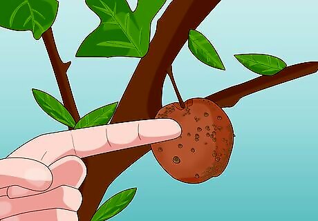 Treat diseases like brown rot by pruning damaged sections. Brown rot is a common disease that affects plum trees. Withered brown twigs and flowers covered in sticky brown drops are signs of brown rot. Prune and destroy any affected fruits, twigs, leaves, and flowers. You can also apply a fungicide like myclobutanil to treat brown rot.