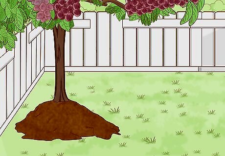 Check that your tree’s graft line is not submerged in the hole. The graft line is a clear line or “scar” near the base, where the root and tree join. The graft line should remain at least 1 inch (2.5 cm) above the soil when your tree is in the hole so it can grow properly. If your hole is too deep, fill it little by little with soil you removed until the graft line is at the right position.