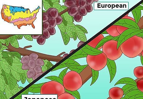Pick a European type if you have space for just one tree. Japanese plum trees and American hybrids need to cross-pollinate, which means you’d need a second tree to produce fruit. If you have space for only one tree, go with a European plum tree. It will also grow well in most climates. In general, Japanese plums are sweet and juicy, with red skin. European plums are very sweet and purple. American hybrids vary in appearance and taste, but many are similar to Japanese plums.