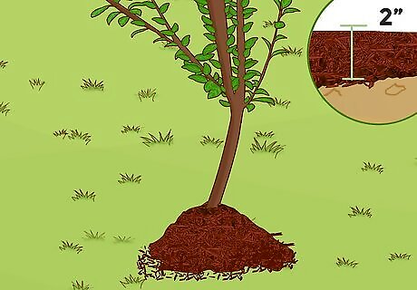 Use mulch around the trunk to hydrate and control weeds in the spring. Cypress mulch can cut down the evaporation of water near the soil’s surface, helping your tree conserve water. Mulch made from cedar will block weeds from sunlight so they don’t grow and affect your plum tree. Apply mulch around the base of your tree so that it’s 2 inches (5.1 cm) thick. When organic mulch like cypress and cedar decomposes, it also provides nutrients to your tree so it can be used as an alternative to fertilizer. You can make your own mulch from tree branches, bark, and leaves.