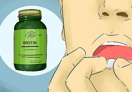 Take a vitamin supplement. Vitamin supplements can be a great way to optimize hair health and stimulate beard growth. Perhaps the best supplement for maximizing hair growth is biotin, a dietary supplement found in pharmacies and health food stores. Dermatologists recommend taking 2.5 mg of biotin every day, for best results. Other vitamin supplements which have been said to improve beard growth include vitamin B1, B6 and B12, along with beta-carotene, flax seed oil and nettle oil. There is also a multivitamin called VitaBeard which is specifically designed to promote healthy facial hair, allowing beards to grow faster and stronger. It also helps to minimize itching, as it regulates skin's oil production. VitaBeard is available to buy online at beardvitamin.com.