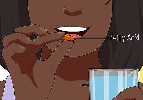 Increase your intake of fatty acids. Try a supplement that has omega-3 and omega-6 fatty acids along with antioxidants. Typically, the best option is a fish oil supplement. Some people find that these types of supplements help slow down hair loss and strengthen hair. Ask your doctor what daily fish oil supplement is appropriate for your health regimen. Alternatively, try adding more fatty fish to your diet, such as salmon, herring, swordfish, tuna, and sardines.