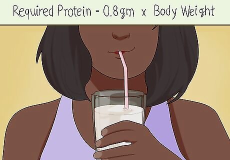 Ensure you're getting enough protein. If you're not getting enough protein in your diet, it can make your hair brittle, as hair is primarily made up of protein. Typically, you need 0.8 grams of protein per kilogram of body weight. To determine how many grams you need per pound, multiply your weight in pounds by 0.36. For instance, if you weigh 160 pounds, multiply that number by 0.36 to get 58 grams of protein. As an example, a serving of fish or poultry that's about the size of a deck of cards contains approximately 20 grams of protein. A single egg contains 6 grams of protein, while a glass of milk has 8 grams. You can also use this calculator to figure out how many grams per day you need: https://www.nal.usda.gov/human-nutrition-and-food-safety/dri-calculator.
