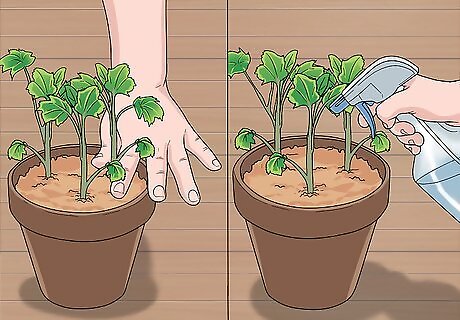Water the cutting daily to ensure it doesn't dry out. It's best to check the cutting daily at first, touching the soil to feel if it's dry or not. If it is dry, water the soil slowly to allow it to absorb adequately. How much water the cutting needs will depend on how much sunlight it gets, the specific variety, and the temperature.