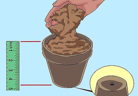 Fill small clay pots with nutrient-rich soil. Clay pots are the best to use because they drain easily and can breathe. Use a rich soil or a loam-based compost, filling it almost to the top. A 12 cm (4.7 in) pot works well. Make sure the pot has drainage holes.