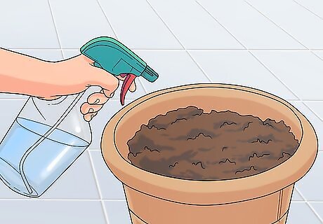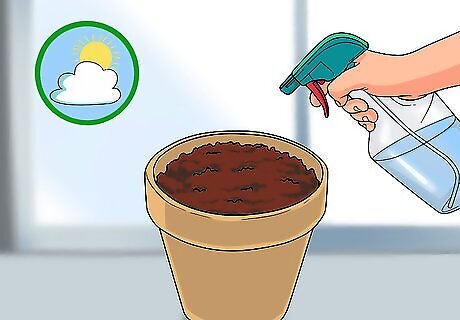 Keep the potting soil moist and in a sunny spot so the seeds will grow. Once your seeds are planted, check the soil daily to ensure it’s nice and moist. Place the seeds in a spot that gets access to lots of sunlight, such as a windowsill. Use a spray bottle to keep the soil nicely wet, if possible. If you don't have a spray bottle, fill a small cup with water and slowly water the seeds.