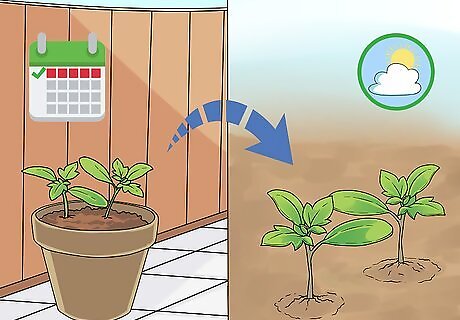 Transfer the plants into the ground after a week of adjustment. Look for a sunny spot in your garden or yard that has well-draining soil. Dig a hole that's twice the size of the small seedling root ball, and place the plant into the hole, covering up the roots with soil. Keep the young seedling well-watered while it's adjusting to its new environment.