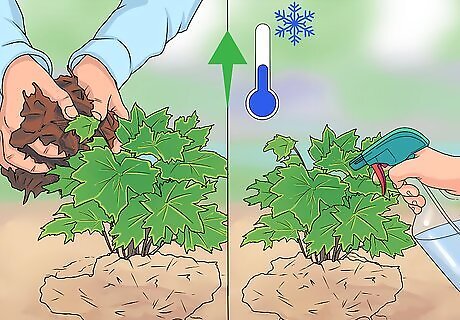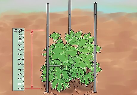 Stake the plant to help it support its own weight, when necessary. Once the plant is 12 inches (30 cm) tall, install stakes to keep it from falling over since it’s top-heavy. You can use metal plant supports or bamboo canes, which can be found online or at a garden store. You don’t need to tie the individual stems in, just let the framework support the plant.