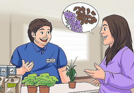 Purchase the seeds from a nursery or website. Check with your local nursery or garden store to see if they sell delphinium seeds. If they don't, you can find and purchase them online. Do a quick online search to find reputable seed sellers. Read the instructions on the seed packet after you get it before starting the planting process—there are usually climate-specific suggestions about when you should start planting, as well as other variable conditions.