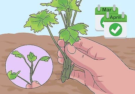 Choose new shoots near the base of the plant in March or April. These shoots will be young and solid, which is important for a healthy cutting. As the plants grow older, they become hollow, which can lead to rotting if cut. Look for shoots that are healthy and green. These months are for the Northern Hemisphere.