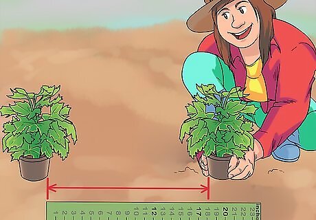 Space delphiniums 18–24 inches (46–61 cm) apart. Spacing them out is important so that the root balls have plenty of room to grow. Each variety will have different guidelines, but placing them far enough apart so that the delphinium can reach maturity comfortably is ideal. Read the instructions that come with the plant to know exactly how far apart to spread your delphiniums. Use a ruler or measuring tape to calculate where to plant the delphiniums.