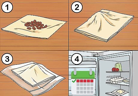 Presoak your seeds to allow them to germinate before planting. Dampen a paper towel and place the seeds you’d like to plant on half of the paper towel. Fold the other half of the paper towel over the seeds so that they’re in the middle, and place the soaking seeds in the fridge to germinate. Once they've germinated, you'll see a white tail growing out of the seed. Place the paper towel and seeds in a plastic bag before they germinate to prevent them from drying out. The seeds could take anywhere from a few days to over a week to germinate, so be patient and check on them daily.