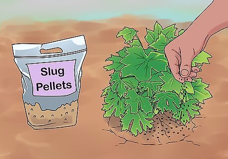 Control pests like slugs and snails. Slugs and snails love delphiniums and are known to eat away at the plants. To help prevent this, use something like slug pellets, nematodes, or another pest cure, depending on whether you’re okay with using a non-organic fix. Sprinkling grit on the shoots of the plant will also help with slugs and snails.