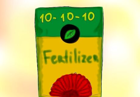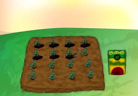 Use 4 ounces of fertilizer per 25 square feet of garden space. Sprinkle the fertilizer on the soil around the plants but be careful not to get any on the ice plants. It could burn the leaves and stems. If fertilizer does get on the plants, wash it off immediately with clear water. Water the ice plants right after spreading the fertilizer to help wash it into the soil.