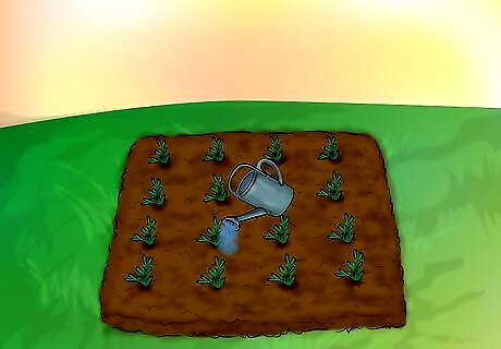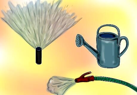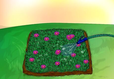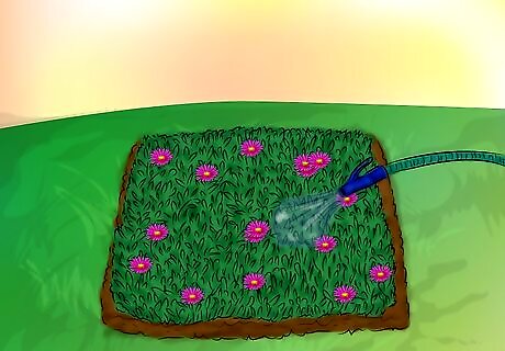 Choose your watering device. Ice plants can be watered with a watering can, a soaker hose or the sprinkler. If they are watered with a soaker hose or sprinkler, set a 1-inch deep tuna or cat food can right next to the ice plants. Shut off the sprinkler or soaker hose when the can is full of water.