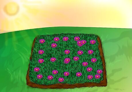 Pick out a location where your ice plant will get at least six hours of sunlight each day. Eight to ten hours of sunlight is even better. Plant them in a sunny garden or, if they are planted in containers, set them on a sunny patio or deck. When ice plants do not get enough sunlight the leaves will become pale and they will bloom very little, if they bloom at all.