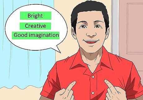 Understand your potential. The biggest obstacle you face may be yourself. Doubting yourself won’t get you anywhere. Realizing that you are just as capable as anyone else to have a big imagination allows you to get there. Say this to yourself when you are unsure of your potential: “I am bright and creative and have a good imagination. I have the capacity of expanding my imagination and it can become as large as I want.”