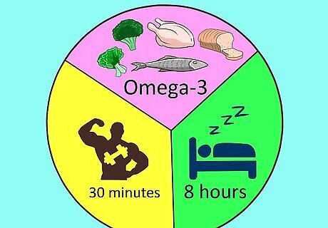 Support physical and mental health. Your brain and body function at their best when you give them the right ingredients--that is, healthy foods, exercise, rest, and stress-management. Develop a health model that helps you support your well-being and your imagination. For instance, choose brain-healthy foods omega-3 fats (e.g. flaxseed and salmon), whole grains, leafy green vegetables, and flavanoids and polyphenols (e.g. green tea). Exercise at least 30 minutes per day on most days. Get at least 8 hours of sleep per night. Relax often whether through meditation or a passion project like painting.