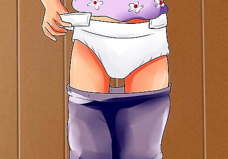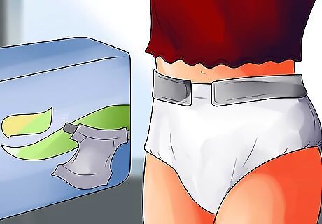 Don't use the diaper until the sleeping portion of the sleepover begins. Utilize the bathroom until the sleeping portion of the sleepover begins. Your guests will smell the stench of the urine when they come through the door if you utilize your diaper, and they can spot when things are amiss, and your genital region sags more than normal. Add in a few extra minutes to adjust when going into the bathroom to pull up your pants.