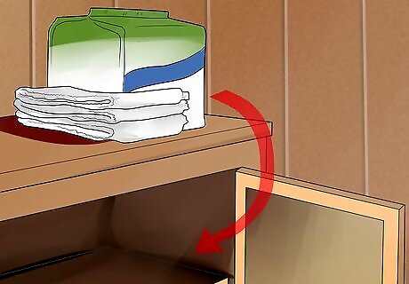 Stash a diaper in one of the bathroom cabinets. On the morning you awaken from your sleepover, you'll need something to change into to make it seem as if you had no accident and that no sweat has built up during the night. You'll want to plan on using the diaper until your invitee leaves, so keeping one handy is of utmost concern. (You'll learn where the dirty one goes momentarily.)
