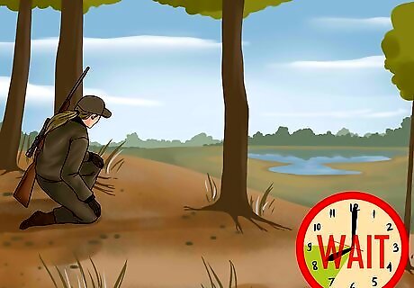 Finish the job. Once you track down your wounded target, it may well be lying down or standing with little urgency to move. Some hunters abide by the practice of slitting a prone deer’s throat in order to end its life, but a properly targeted shot from close range works at least as well. Whatever method you choose, bring the impressive creature to its end without added pain and suffering. Once the deer is confirmed dead, you will need to field dress it. While this is an easier process to learn by watching a seasoned veteran, How to Field Dress a Deer offers good step-by-step directions with illustrations.