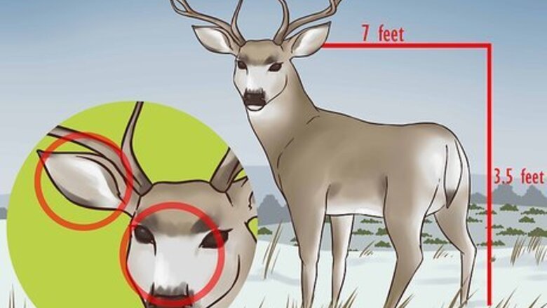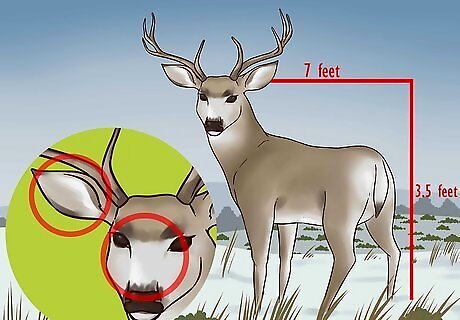 Learn about “muleys.” In addition to their wide-ranging habitat and big ears, mule deer have other distinctive characteristics that are important for a good hunter to recognize. The more you know before the hunt, the more likely you are to find success. You can identify mule deer not only by their ears, but also their typical coloring (grayish-brown, with a light gray face and a black forehead “mask”) and size (up to 3.5 feet tall and 7 feet long, and roughly 130 to 280 pounds in weight). They can see fairly clearly for up to 600 yards (and, as nocturnal feeders, have excellent night vision) and can smell a human approaching from up to half a mile away (with a sense of smell roughly one thousand times better than ours). “Muleys” eat weeds, leaves, twigs, and shrubs like other deer, but tend to be more picky eaters, preferring tender vegetation. This makes their foraging areas more limited (and therefore easier to identify).
