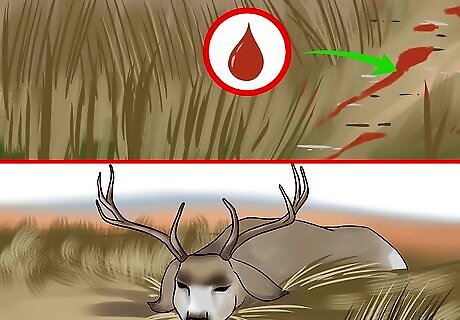 Track down a wounded mule deer. Unless you are an expert marksman or happen to make a lucky shot, your “muley” is unlikely to drop dead in place from a single shot. To claim your prize and end your target’s suffering, you need to be ready to track and kill the deer you just hit. Be prepared for what may be a time-consuming process. Parts Three and Four of How to Go Deer Hunting offer good advice on identifying and following blood trails to the injured deer, as well as finishing the kill. One piece of advice you may be surprised to see is to wait thirty minutes before you begin tracking the deer. An immediate chase may cause the deer to run further afield, while some patience may cause the wounded animal to lay down and bleed out closer to your location.