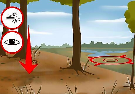 Set up in the right location. Whether you’re playing the “waiting game” or utilizing a stalking approach to your hunt, determining the best location in which to set up for your shot is essential. Consider factors like visibility, vantage point, and wind direction when setting up. Setting up on higher ground than your intended target is almost always a smart hunting strategy, and it typically holds true when hunting mule deer. However, remaining downwind (or at least crosswind) from your target is even more essential when hunting “muleys.” As mentioned, mule deer have a fantastic sense of smell, and are likely to sniff you out if you’re upwind, even if you use a masking agent.